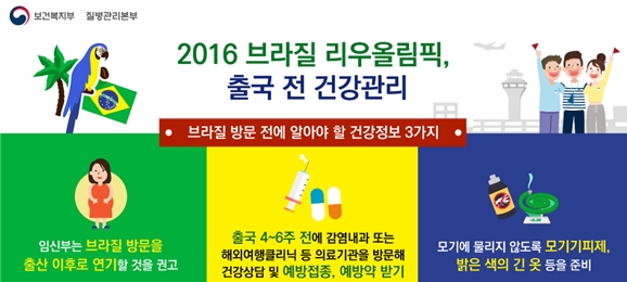 또 리우 올림픽 기간 중에는 질병관리본부 역학조사관 2명과 감염내과 전문의 3명(국립중앙의료원)을 현지에 파견해, 감염병 모니터링, 역학조사 및 환자관리 등을 수행할 계획이다.