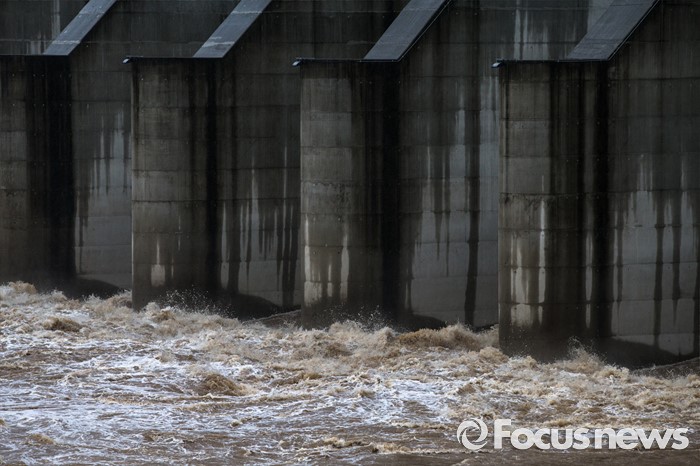 (연천=포커스뉴스) 태풍 네파탁이 북상하고 전국 곳곳에 호우주의보와 경보가 내린 5일 오전 경기도 연천군 군남홍수조절지에서 한국수자원공사가 수위조절을 위해 임진강 강물을 방류하고 있다.