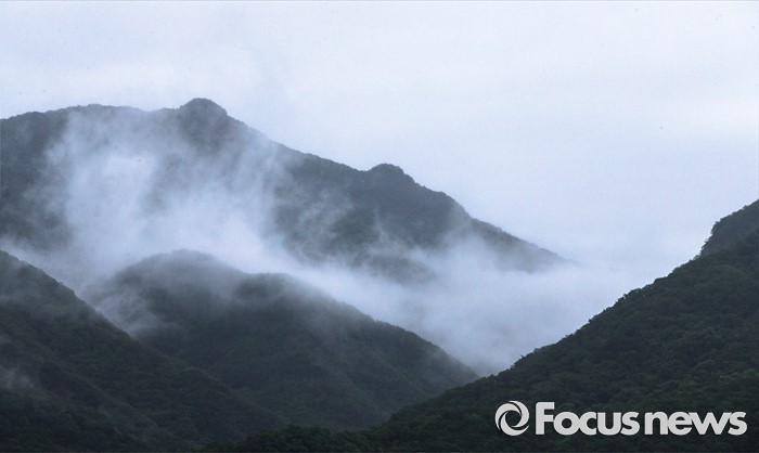 (연천=포커스뉴스) 태풍 네파탁이 북상하고 전국 곳곳에 호우주의보와 경보가 내린 5일 오전 경기도 연천군 상리 인근의 산 허리에 비를 동반한 안개가 짙게 깔려 있다.