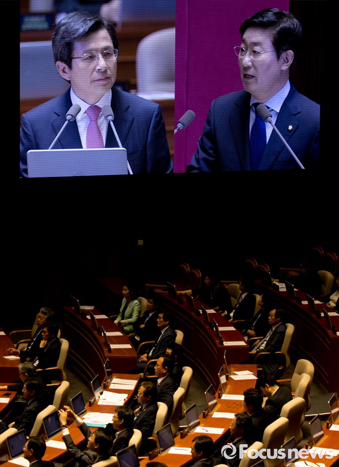 (서울=포커스뉴스) 5일 오전 서울 여의도 국회에서 열린 343회 국회(임시회) 7차 본회의, 정치·외교·통일·안보·교육·사회·문화에 관한 질문에 참석한 황교안 국무총리가 박범계 더불어민주당 의원 질문에 답하고 있다.