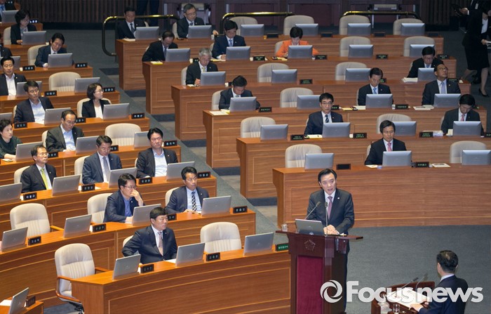 (서울=포커스뉴스) 5일 오전 서울 여의도 국회에서 열린 343회 국회(임시회) 7차 본회의, 정치·외교·통일·안보·교육·사회·문화에 관한 질문에 참석한 김현웅 법무부 장관이 박범계 더불어민주당 의원의 질문에 답하고 있다.