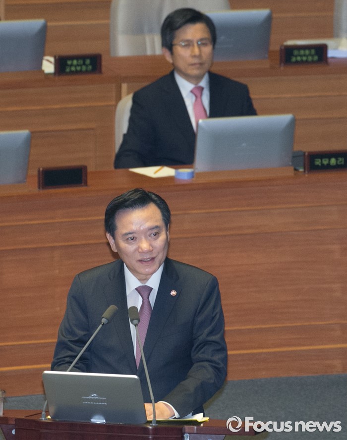 (서울=포커스뉴스) 5일 오전 서울 여의도 국회에서 열린 343회 국회(임시회) 7차 본회의, 정치·외교·통일·안보·교육·사회·문화에 관한 질문에 참석한 김현웅 법무부 장관이 박범계 더불어민주당 의원의 질문에 답하고 있다.