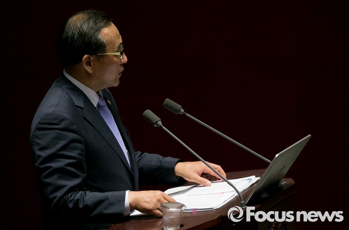 (서울=포커스뉴스) 5일 오후 서울 여의도 국회에서 열린 343회 국회(임시회) 7차 본회의, 정치·외교·통일·안보·교육·사회·문화에 관한 질문에 참석한 홍윤식 행정자치부 장관이 박덕흠 새누리당 의원의 질문에 답하고 있다.