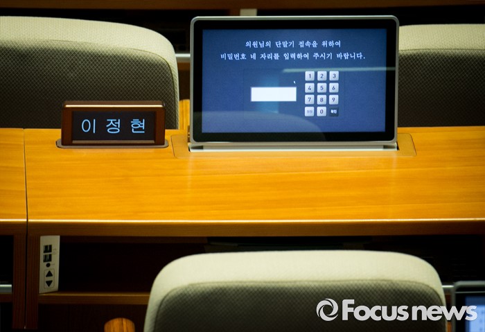 (서울=포커스뉴스) 5일 오후 서울 여의도 국회에서 열린 343회 국회(임시회) 7차 본회의, 정치·외교·통일·안보·교육·사회·문화에 관한 질문에 불참한 이정현 새누리당 의원의 빈 자리가 보이고 있다.