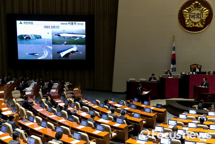 | △ 본회의장의 세월호 참사 당시 사진 |