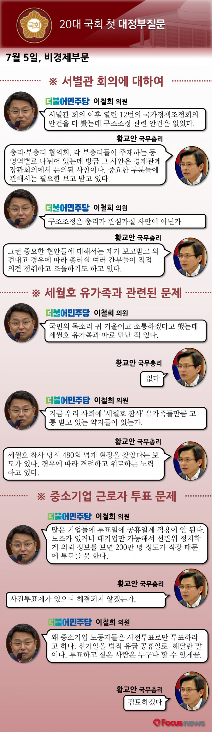 다음은 더불어민주당 이철희 의원과 황교안 국무총리의 질의응답 내용이다.