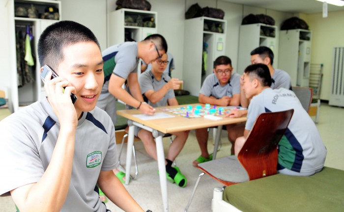 임장혁 LG유플러스 공공고객담당 상무는 “안부 전화를 하기 위해 공중전화 앞에서 길게 줄을 서서 기다리던 모습은 사라지고, 생활관 안에서 편안하게 휴대폰으로 통화하는 새로운 풍경이 보편화되는 등 병사 수신용 휴대폰이 병영생활의 새로운 소통 수단이자 문화로 자리잡은 것으로 보인다”고 말했다.한 장병이 생활관에서 병사 수신용 휴대폰을 통해 부모님과 통화하고 있다.<사진제공=국방부>