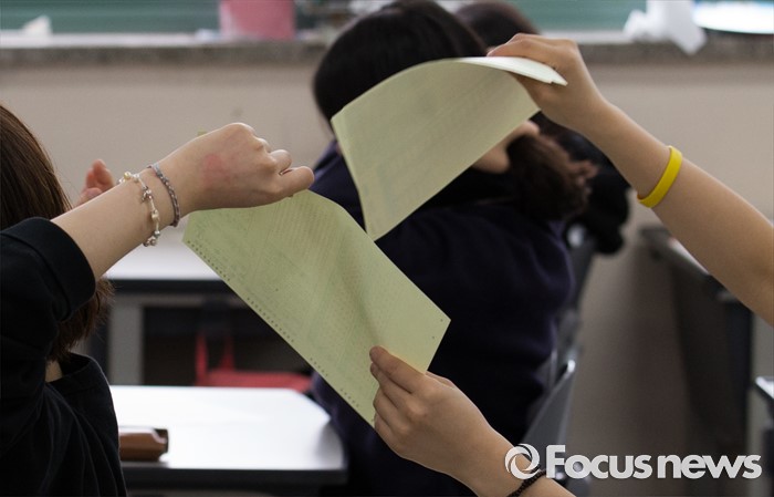 | △ 전국연합학력평가 답안지 건네는 학생들 |