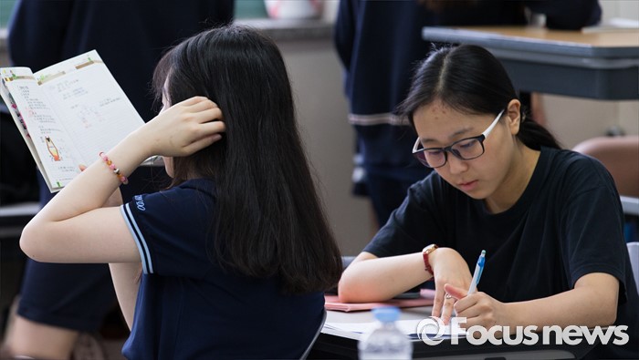 (서울=포커스뉴스) 6일 오전 서울 은평구 신도고등학교에서 3학년 학생들이 2016학년도 7월 전국연합학력평가를 준비하고 있다.