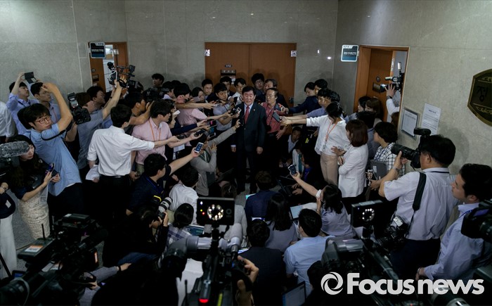 (서울=포커스뉴스) 최경환 새누리당 의원이 6일 오전 서울 여의도 국회 정론관에서 8·9 전당대회 불출마 기자회견을 마친 뒤 취재진 질문에 답하고 있다.
