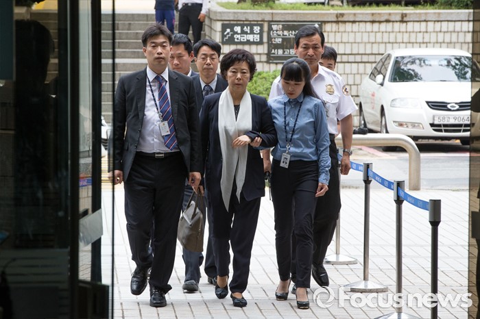 (서울=포커스뉴스) 롯데면세점 입점 로비 혐의를 받고 있는 신영자 롯데장학재단 이사장이 영장실질심사를 받기 위해 6일 오전 서울 서초구 서울중앙지법으로 들어서고 있다.