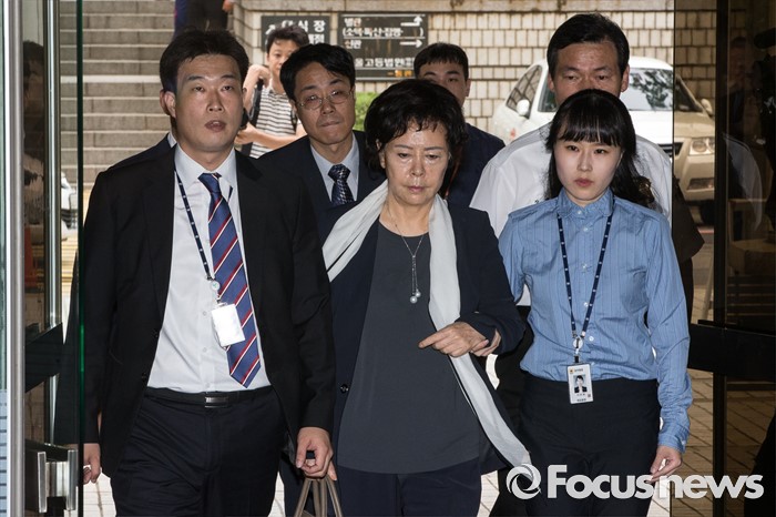(서울=포커스뉴스) 롯데면세점 입점 로비 혐의를 받고 있는 신영자 롯데장학재단 이사장이 영장실질심사를 받기 위해 6일 오전 서울 서초구 서울중앙지법으로 들어서고 있다.
