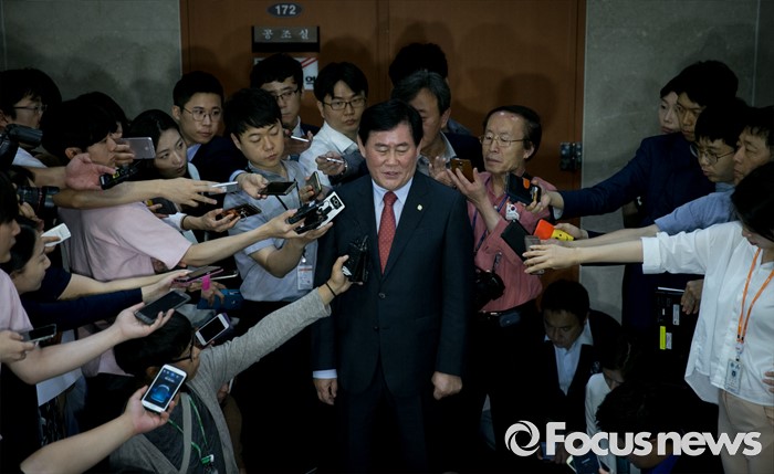 | △ 취재진 앞에 선 최경환 |