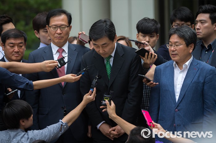 (서울=포커스뉴스) 2012년 대선을 앞두고 발생한 '국정원 여직원 감금 사건' 재판 선고가 내려진 6일 오전 서울 서초구 서울중앙지법 앞에서 이종걸 더불어민주당 의원이 재판 선고 후 법원 앞에서 취재진과 인터뷰를 하고 있다.