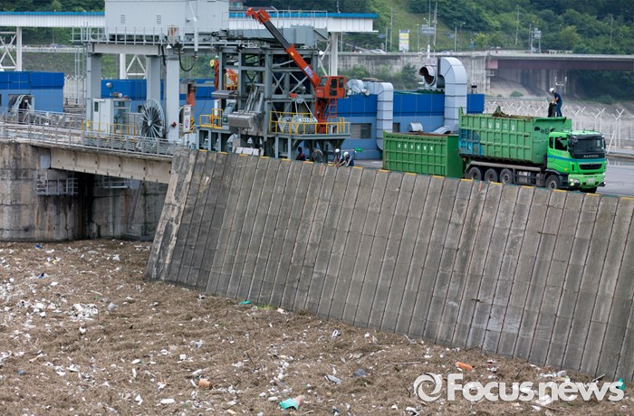 (남양주=포커스뉴스) 서울과 수도권 지역의 장마전선이 소강상태를 보이고 있는 6일 오전 경기도 남양주 팔당댐에 많은 부유물들이 떠내려와 있다.