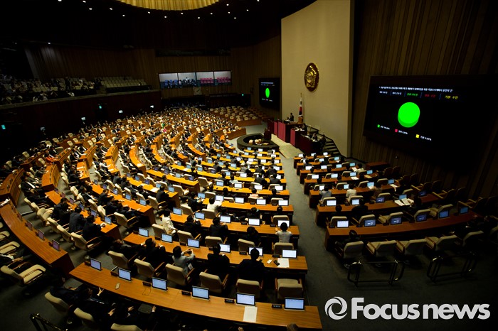 (서울=포커스뉴스) 6일 오후 서울 여의도 국회에서 열린 '제343회 국회(임시회) 제8차 본회의'에서 '가습기살균제 사고 진상규명과 피해구제 및 재발방지 대책마련 위한 국정조사계획서'가 참석자 전원 찬성으로 통과되고 있다.