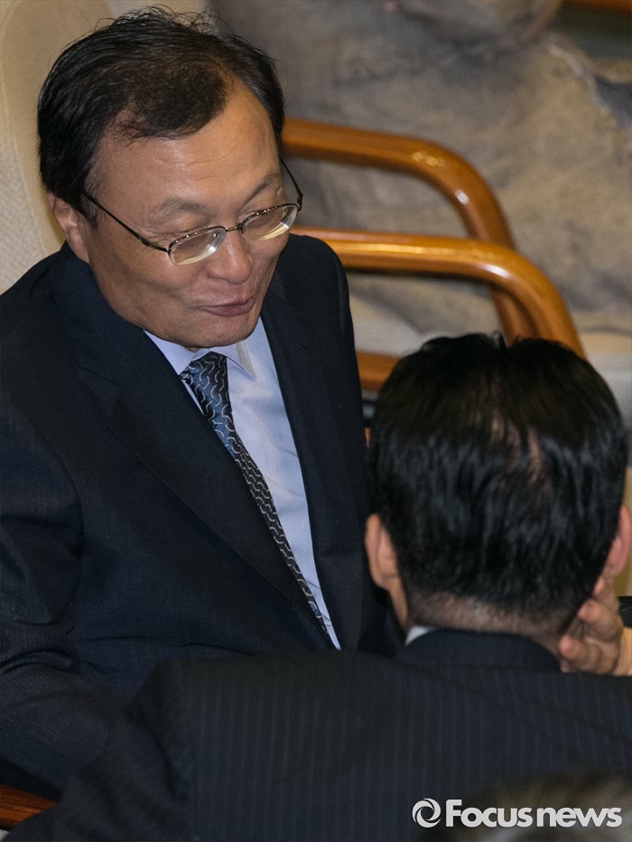 (서울=포커스뉴스) 6일 오후 서울 여의도 국회에서 열린 343회 국회(임시회) 8차 본회의에 참석한 이해찬(왼쪽) 무소속 의원과 박지원 국민의당 원내대표가 대화하고 있다.