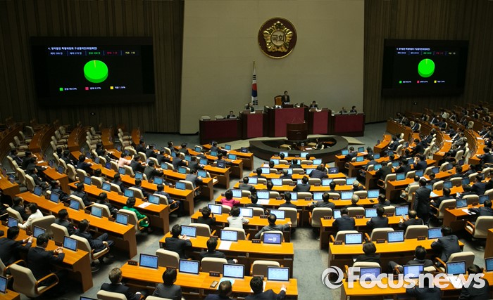 (서울=포커스뉴스) 6일 오후 서울 여의도 국회에서 열린 343회 국회(임시회) 8차 본회의에서 정치발전 특별위원회 구성결의안이 재석 272인 중 찬성 268인, 반대 1인, 기권 3인으로 통과되고 있다.