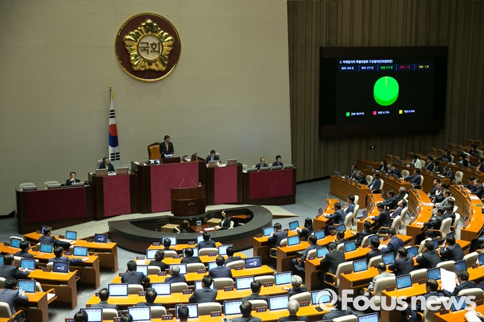 (서울=포커스뉴스) 6일 오후 서울 여의도 국회에서 열린 343회 국회(임시회) 8차 본회의에서 미래일자리 특별위원회 구성결의안이 재석 275인 중 찬성 272인, 반대 2인, 기권 1인으로 통과되고 있다.