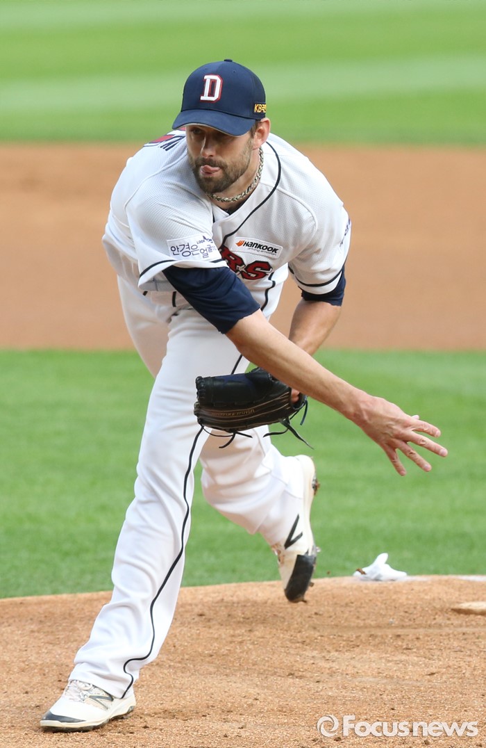 (서울=포커스뉴스) 6일 서울 잠실구장에서 열린 2016 프로야구 넥센-두산 경기에서 1회초 두산 선발투수 니퍼트가 투구하고 있다.