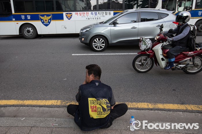 (서울=포커스뉴스) 6일 오후 서울 중구 서울시청광장에서 열린 '건설노동자 총력투쟁 결의대회'에 참석한 조합원들이 광장 인근에서 휴식을 취하고 있다.