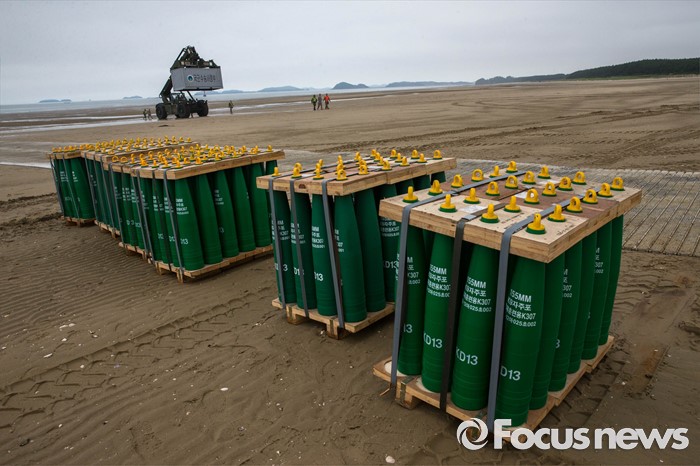 (태안=포커스뉴스) 7일 오전 충청남도 태안군 안면읍 인근 해안에서 2016 합동 해안양륙군수지원(J LOTS) 훈련이 열리고 있다. 합동참모본부 주관으로 해군과 해병대, 육군, 해경이 참가하는 합동 해안양륙군수지원 훈련은 항만 사용이 불가한 지역에서 작전을 수행중인 전투부대에 군수지운을 하기 위한 작전이다.