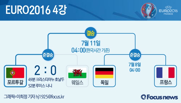 (서울=포커스뉴스 ) 7일(한국시간) 포르투갈이 웨일스를 2-0으로 꺾고 유로2004에 이어 통산 두 번째 유로 본선 결승전에 진출했다.