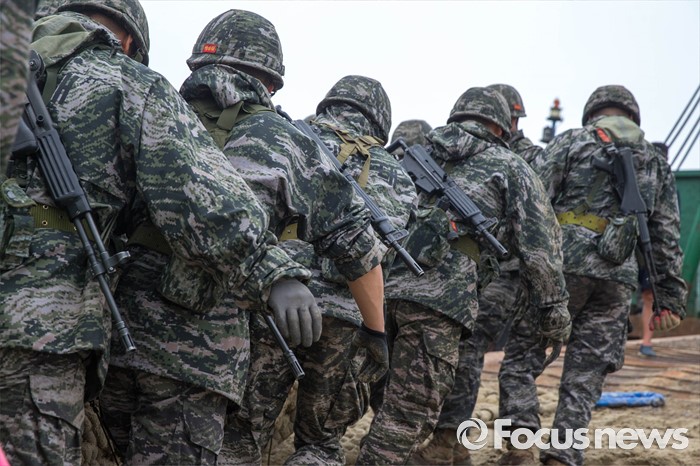 (태안=포커스뉴스) 7일 오전 충청남도 태안군 안면읍 인근 해안에서 2016 합동 해안양륙군수지원(J LOTS) 훈련이 열리고 있다. 합동참모본부 주관으로 해군과 해병대, 육군, 해경이 참가하는 합동 해안양륙군수지원 훈련은 항만 사용이 불가한 지역에서 작전을 수행중인 전투부대에 군수지운을 하기 위한 작전이다.