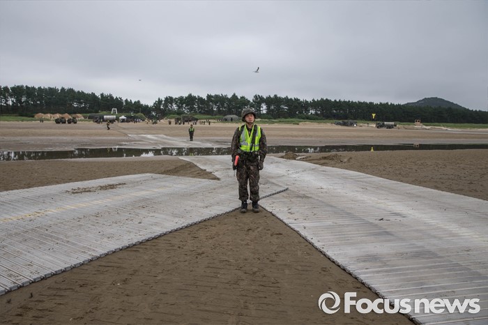| △ 안전한 훈련 위해 곳곳에 배치된 해병대 대원들 |