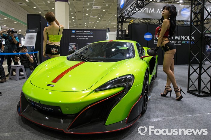 (서울=포커스뉴스) 7일 오전 서울 강남구 코엑스에서 열린 제14회 서울오토살롱에서 레이싱모델이 튜닝차량을 선보이고 있다.
