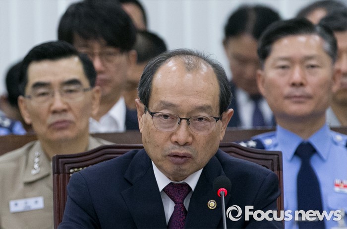 (서울=포커스뉴스) 7일 오전 서울 여의도 국회에서 열린 국방위원회 전체회의에 참석한 장명진 방위사업청장이 의원들의 질의에 답하고 있다.