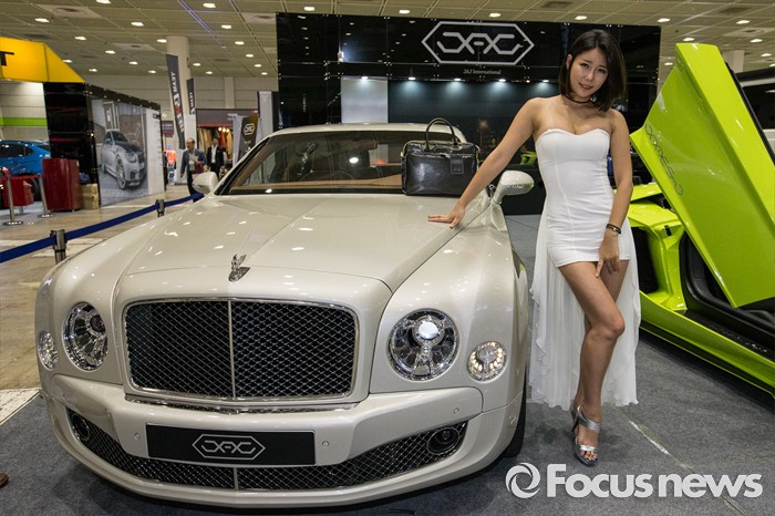 (서울=포커스뉴스) 7일 오전 서울 강남구 코엑스에서 열린 제14회 서울오토살롱에서 레이싱모델이 튜닝차량을 선보이고 있다.