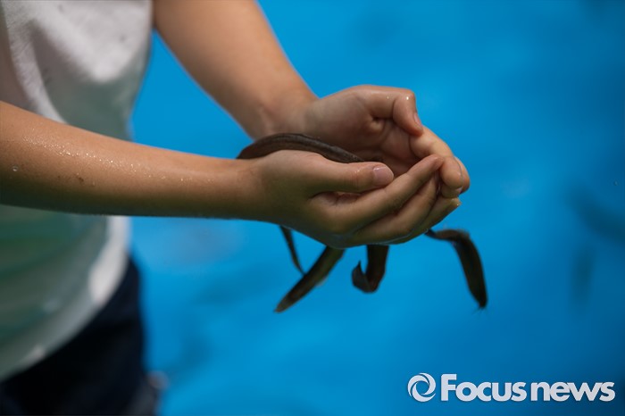 (서울=포커스뉴스) 7일 오후 서울 종로구 청계천 광장에서 열린 '2016 도시 농촌 교류의 날 및 농촌여름휴가 캠페인'에 참석한 아이들이 미꾸라지 잡기 체험을 하고 있다.