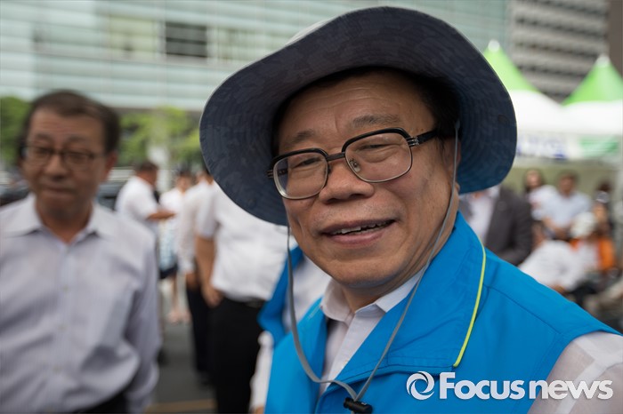 (서울=포커스뉴스) 7일 오후 서울 종로구 청계천 광장에서 열린 '2016 도시 농촌 교류의 날 및 농촌여름휴가 캠페인'에 참석한 이동필 농림축산식품부 장관이 포토타임을 위해 모자를 쓰고 있다.