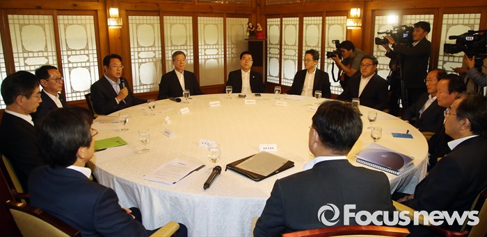 (서울=포커스뉴스) 7일 오후 서울 종로구 삼청동 국무총리공관에서 열린 당·정·청 정책조정협의회에서 정진석 새누리당 원내대표가 모두발언을 하고 있다.