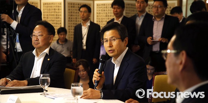 (서울=포커스뉴스) 7일 오후 서울 종로구 삼청동 국무총리공관에서 열린 당·정·청 정책조정협의회에서 황교안(가운데) 국무총리가 모두발언을 하고 있다.