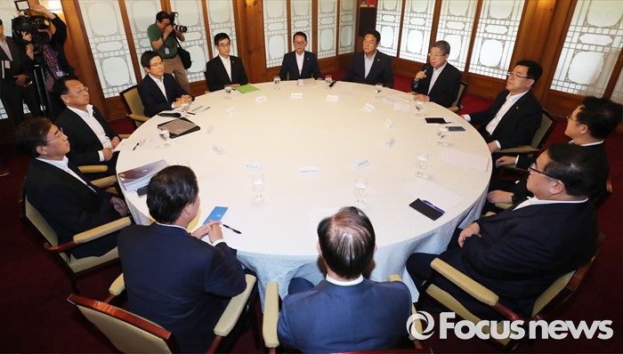 (서울=포커스뉴스) 7일 오후 서울 종로구 삼청동 국무총리공관에서 열린 당·정·청 정책조정협의회에서 김희옥 새누리당 혁신비상대책위원장이이 모두발언을 하고 있다.