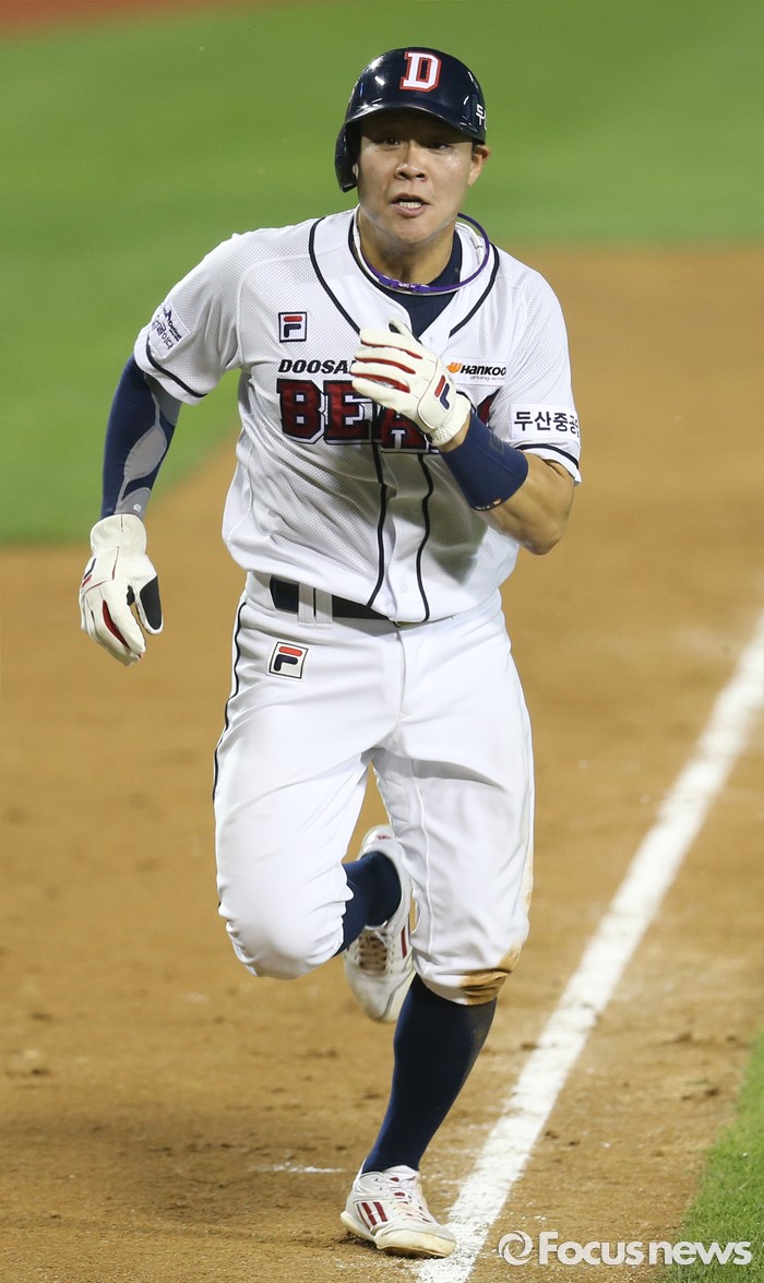 (서울=포커스뉴스) 6일 서울 잠실구장에서 열린 2016 프로야구 넥센-두산 경기 7회말 무사 3루에서 두산 3루주자 박세혁이 김재호의 좌익수 희생플라이때 홈을 향해 질주하고 있다.