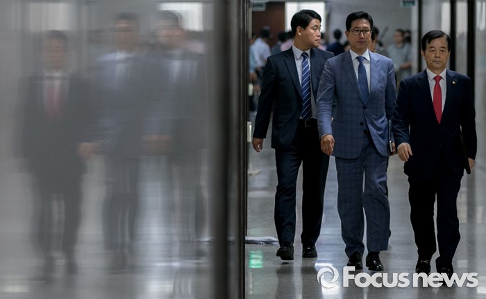 (서울=포커스뉴스) 한민구 국방부 장관이 8일 오전 서울 여의도 국회를 방문해 사드배치 등과 관련 국민의당 지도부와 면담을 마친 뒤 더불어민주당 지도부와 면담을 위해 이동하고 있다.