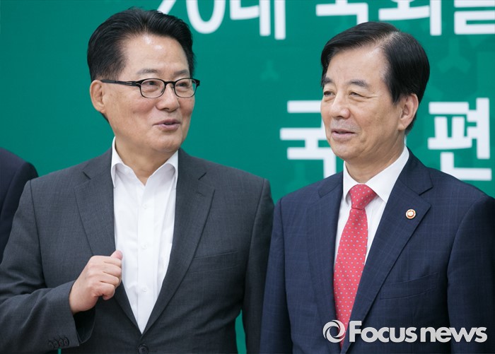 (서울=포커스뉴스) 한민구(오른쪽) 국방부 장관이 8일 오전 서울 여의도 국회를 방문해 사드배치 등과 관련 국민의당 지도부와 면담에 앞서 박지원 비대위원장과 대화하고 있다.