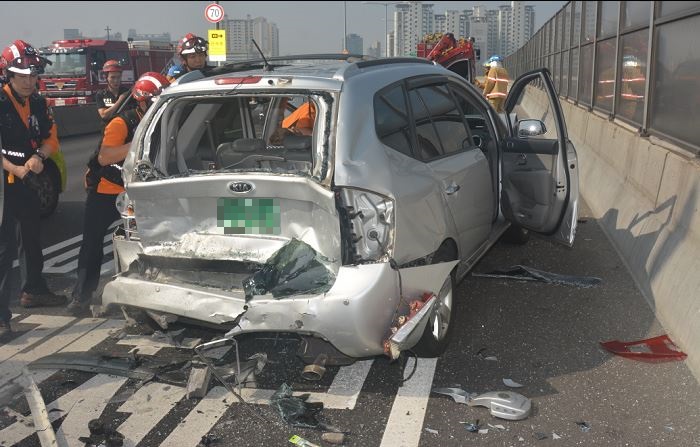 (서울=포커스뉴스) 서울 내부순환로에서 5중 추돌사고로 운전자 등 7명이 부상당했다.