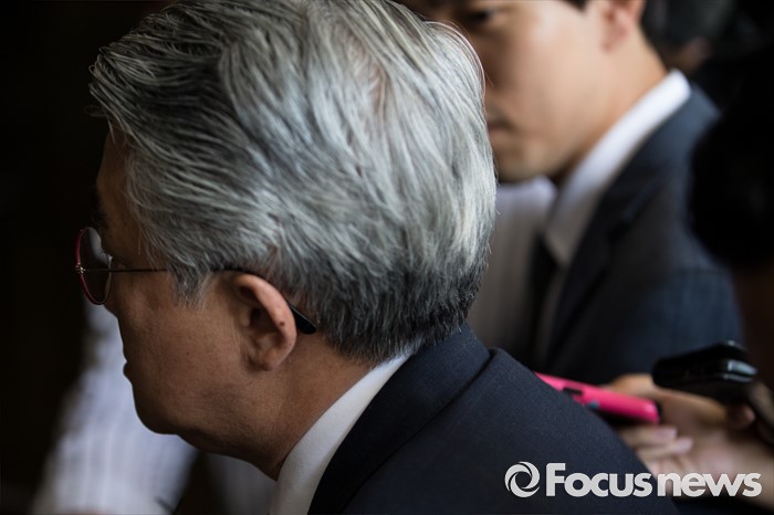 (서울=포커스뉴스) 박동훈(현 르노삼성차 사장) 전 아우디폭스바겐코리아(AFK) 사장이 8일 오후 서울 서초구 서울중앙지방검찰청으로 출석하고 있다.