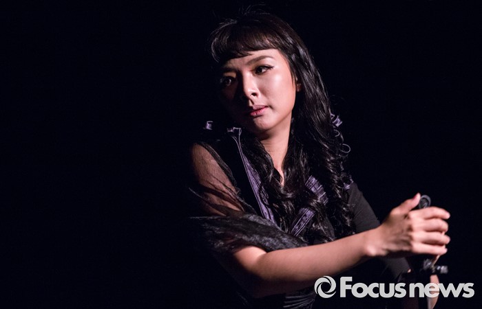 (서울=포커스뉴스) 8일 오후 서울 종로구 동숭아트센터에서 열린 오페라연극 '맥베스' 프레스콜에 참여한 배우 서지유가 주요장면을 시연하고 있다.