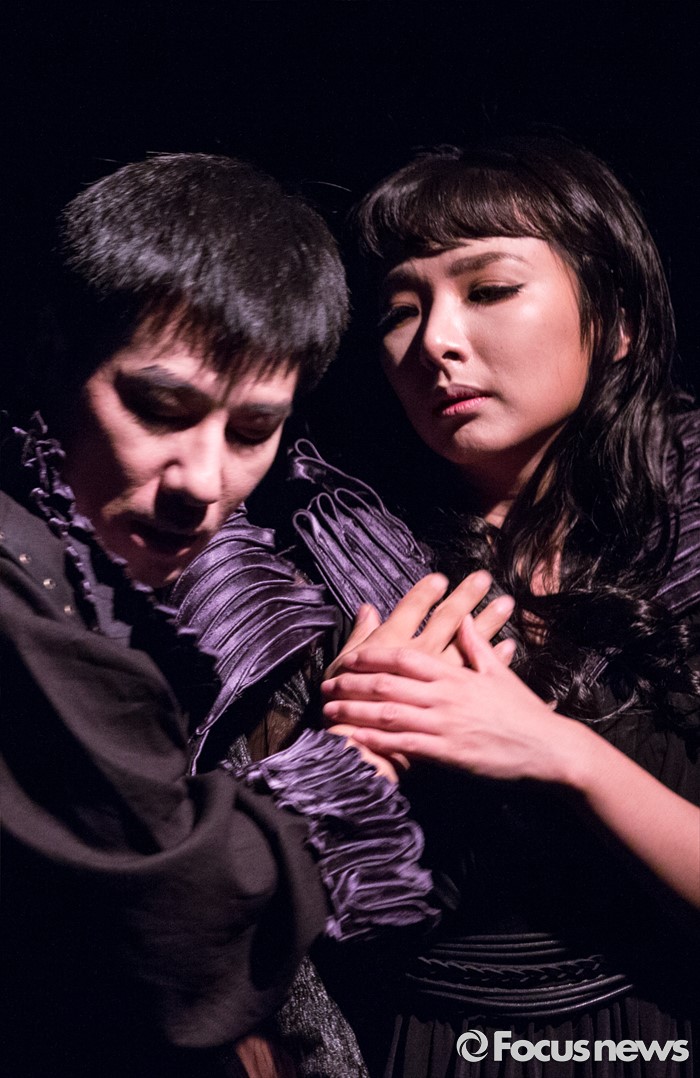 (서울=포커스뉴스) 8일 오후 서울 종로구 동숭아트센터에서 열린 오페라연극 '맥베스' 프레스콜에 참여한 배우 김재만(왼쪽)과 서지유가 주요장면을 시연하고 있다.