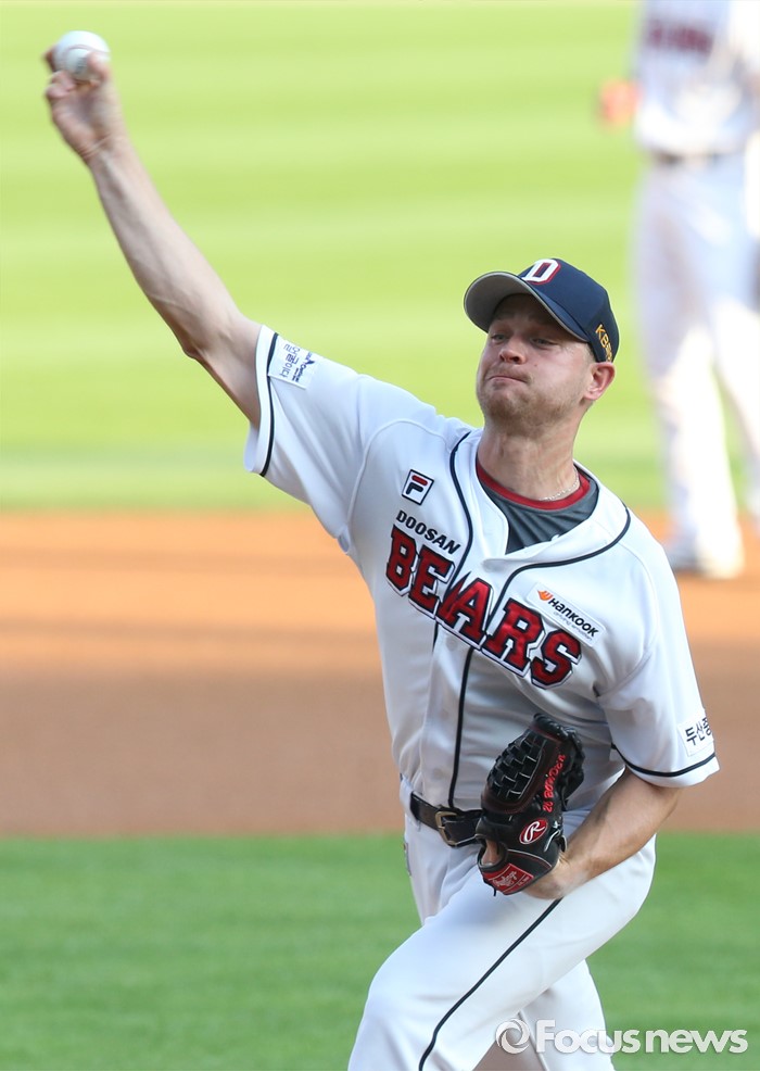 (서울=포커스뉴스) 8일 서울 잠실구장에서 열린 2016 프로야구 KIA-두산 경기에서 1회초 두산 선발투수 보우덴이 투구하고 있다.
