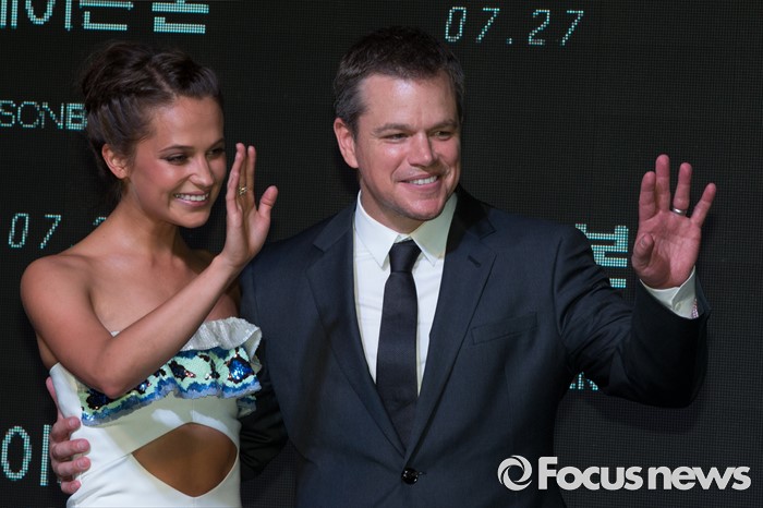 (서울=포커스뉴스) 8일 오후 서울 영등포구 타임스퀘어에서 열린 영화 '제이슨 본' 레드카펫 행사에 참석한 배우 알리시아 비칸데르(왼쪽)과 맷더이먼이 팬들에게 인사를 하고 있다.