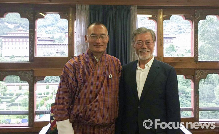 한편 앞서 문 전 대표는 지난달 13일 네팔로 떠났다 근 한 달여 만에 귀국했다.네팔을 거쳐 부탄을 방문하고 귀국을 앞둔 문재인 더불어민주당 전 대표가 8일 부탄의 정부 수반인 체링 톱게이(Tshering Topgay) 수상과 만나 환담을 나눈 사진과 내용을 자신의 SNS에 공개했다. <사진제공=문재인 전 대표 페이스북>