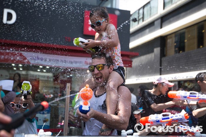 (서울=포커스뉴스) 9일 오후 서울 서대문구 신촌 연세로에서 열린 '2016 물총축제' 에 참가한 외국인들이 서로 물총을 쏘며 즐거운 시간을 보내고 있다.