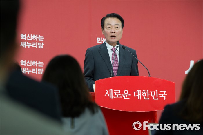 (서울=포커스뉴스) 10일 오후 서울 영등포구 새누리당 당사에서 한선교 새누리당 의원이 당대표 출마 기자회견을 하고 있다.
