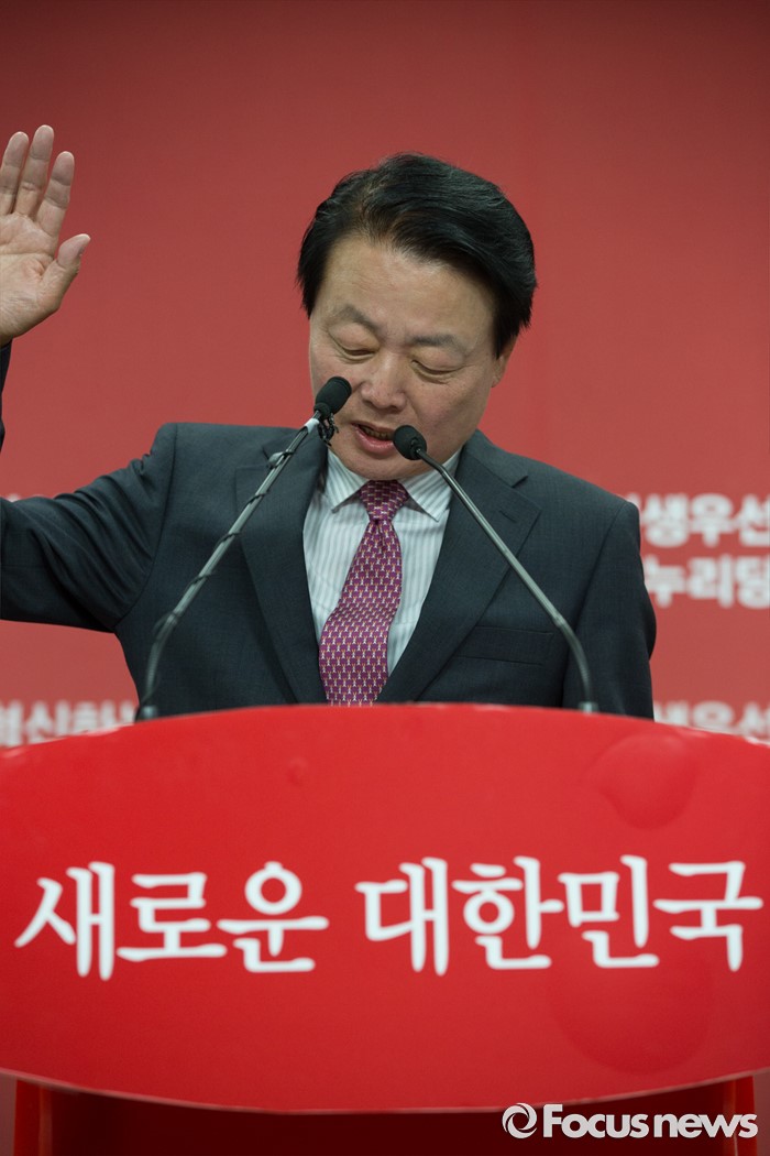 (서울=포커스뉴스) 10일 오후 서울 영등포구 새누리당 당사에서 한선교 새누리당 의원이 당대표 출마 기자회견을 하고 있다.